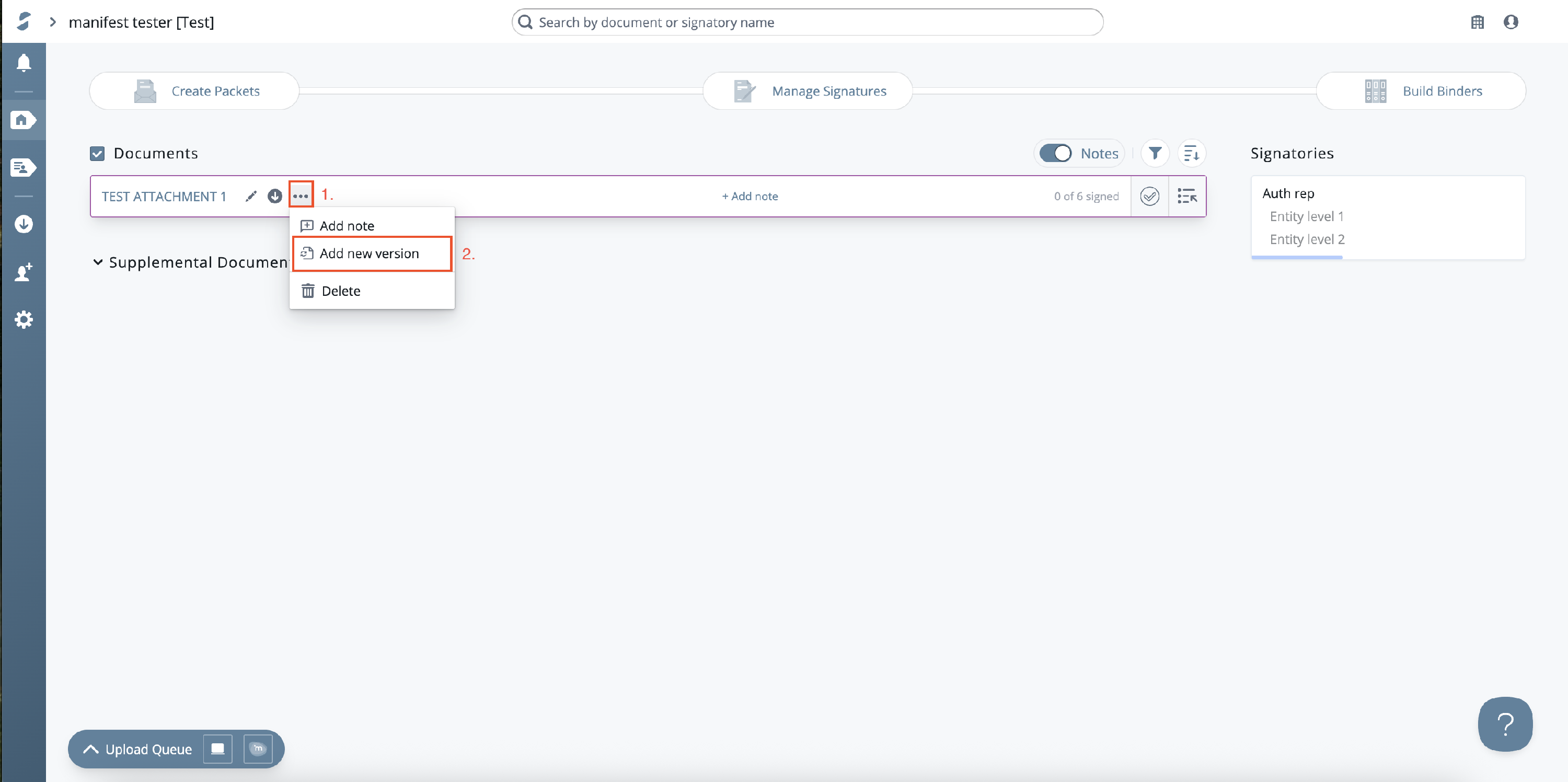 Attachments you add to a document are marked in SimplyAgree and will be retained when you use the Versioning Tool. You'll see a blue outlined page with a paperclip icon indicating where the attachment is in the new version. If you need to move it, just drag and drop in the pop-up when you're confirming the new version.