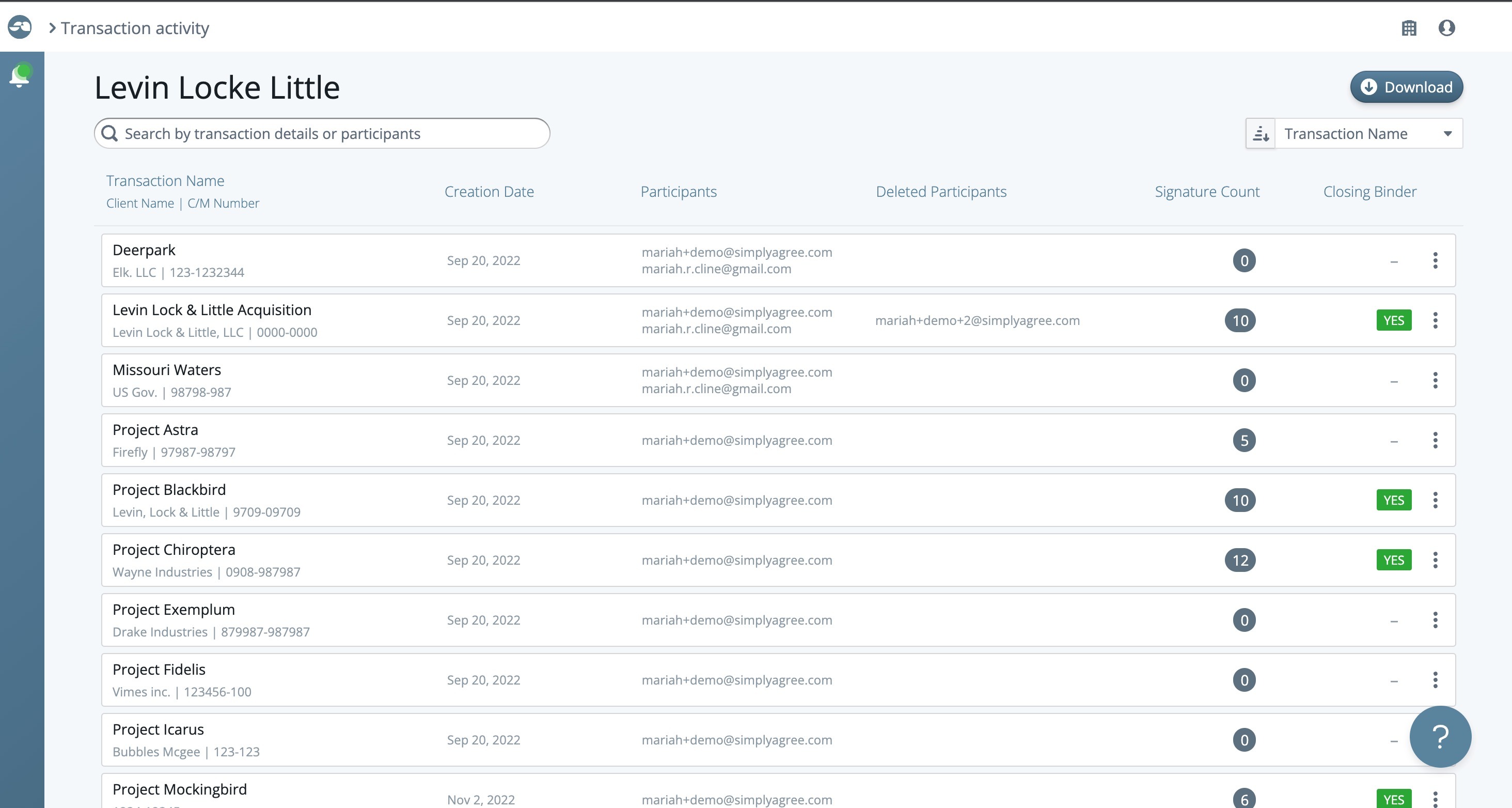 - All participants on the transactions (hover your mouse over their email to see when they were added)