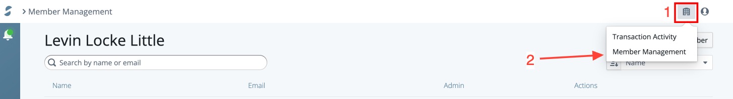 To access this page, click on the Admin panel button in the top right corner of the screen, just to the left of the account profile icon. The Member Management page.
