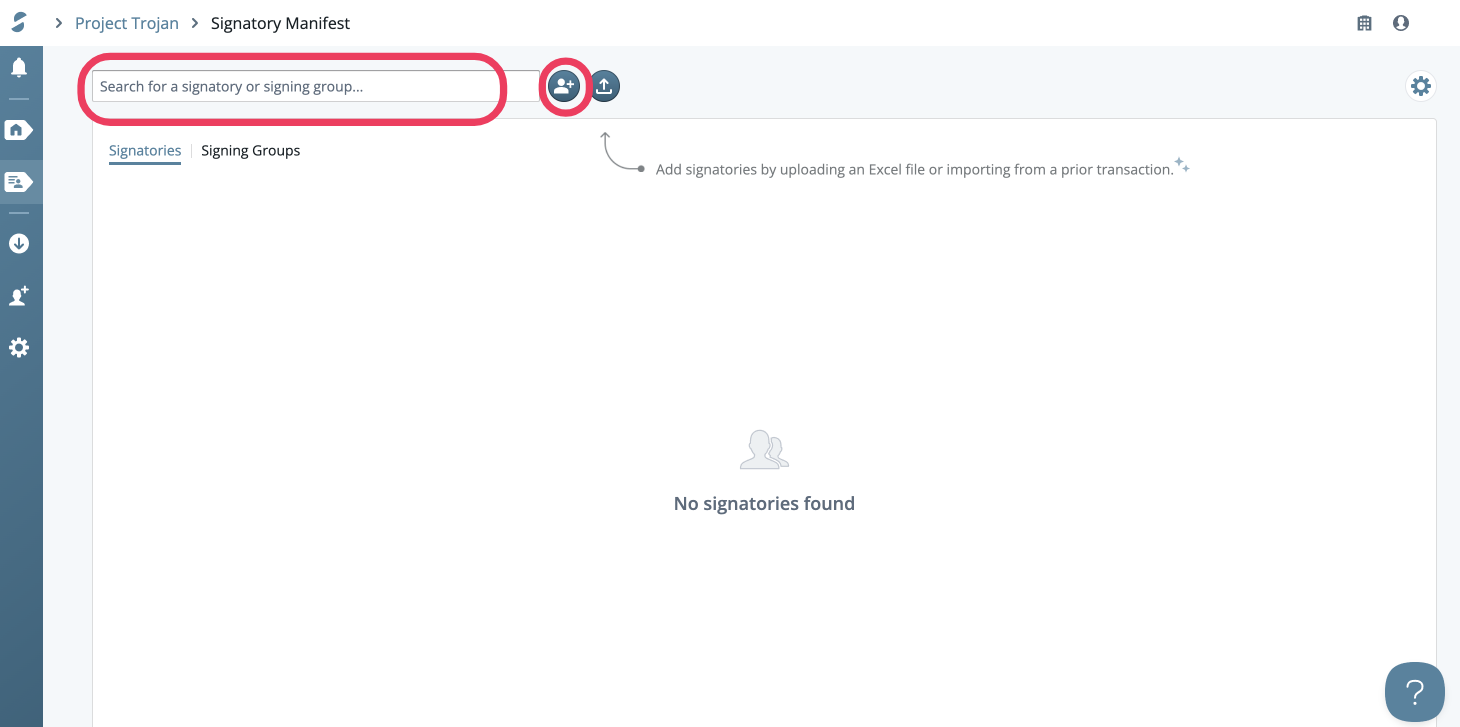 - Navigate to the signatory manifest by clicking on the signatory manifest button on the left-hand sidebar. It looks like a tag with a silhouette