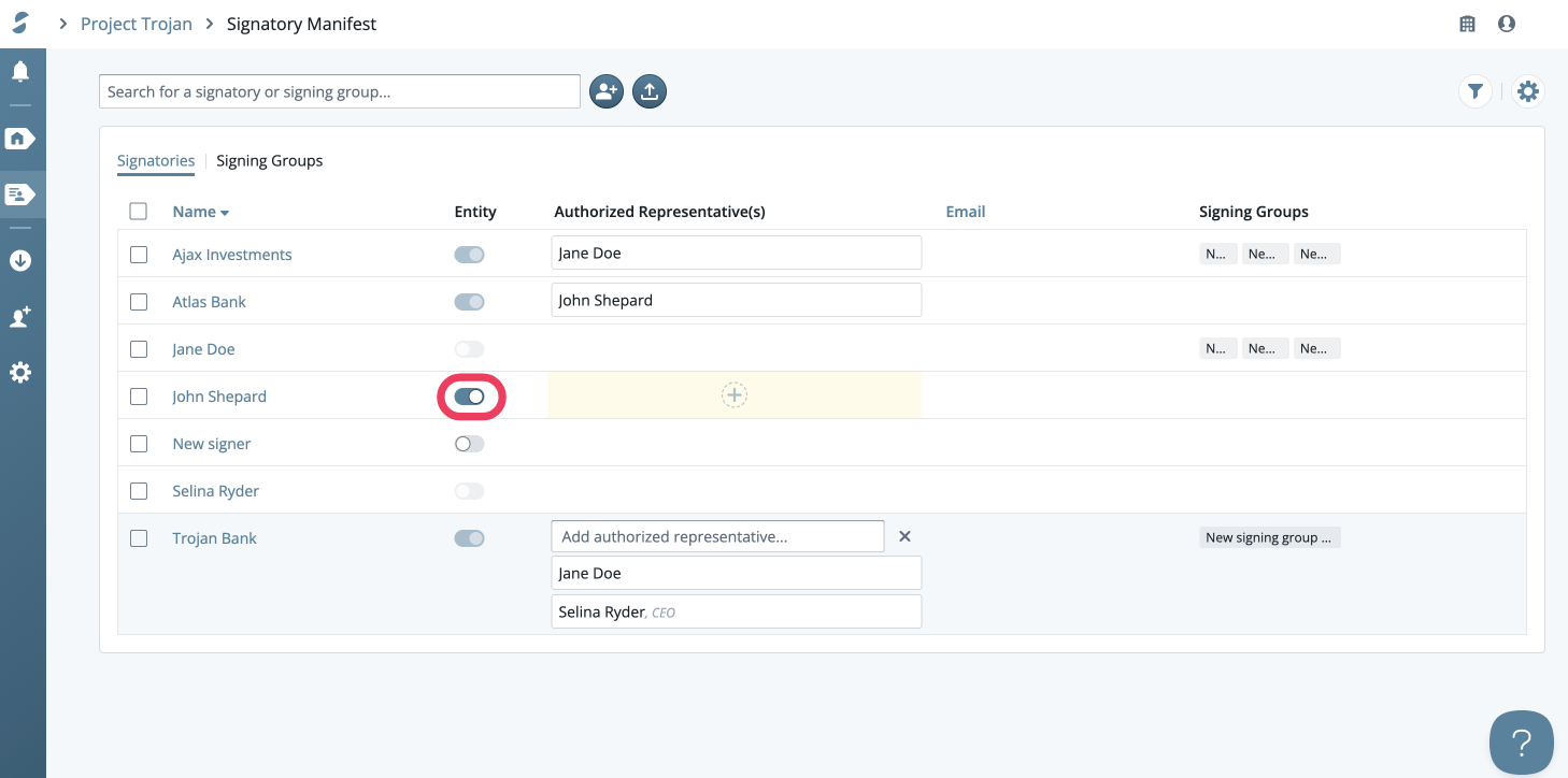 - Navigate to the signatory manifest by clicking on the signatory manifest button on the left-hand sidebar. It looks like a tag with a silhouette