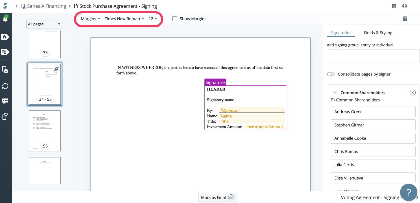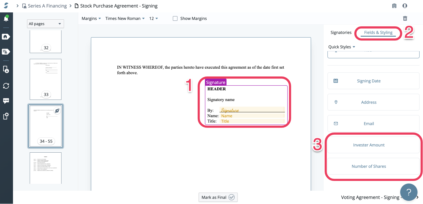 - Click on the custom fields you'd like to be included on this InstaPage. You'll see them pop up on the Signature block preview.
