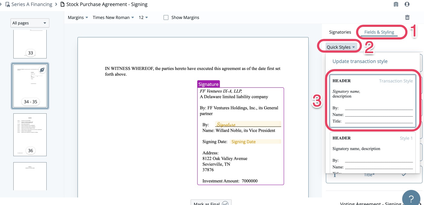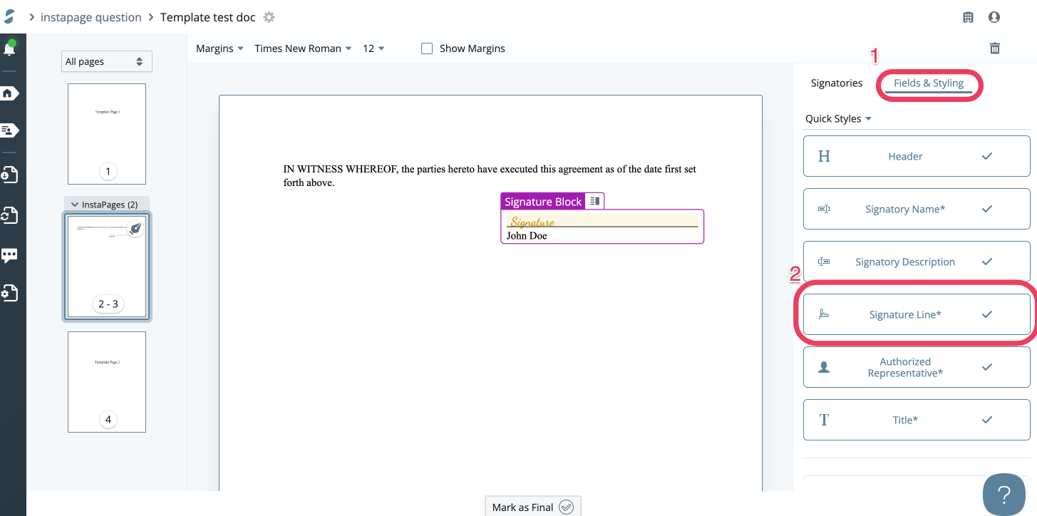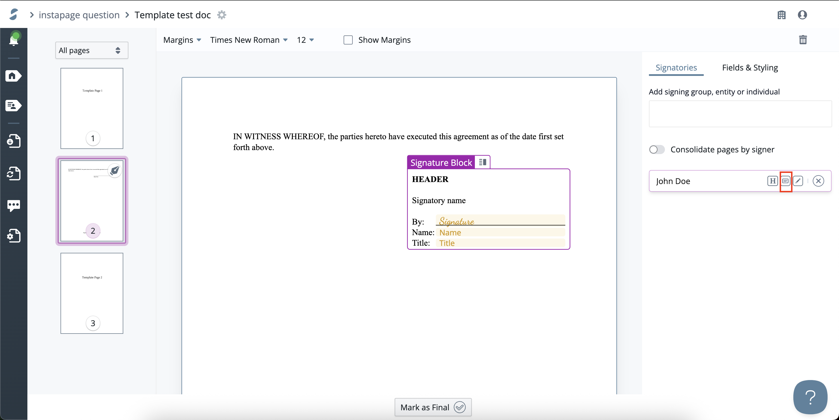 You can set a signature block style across your transaction so it's easy to keep all your InstaPages consistent! This style will be available to all transaction participants and all InstaPages on this transaction.
