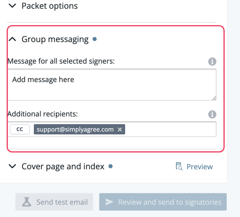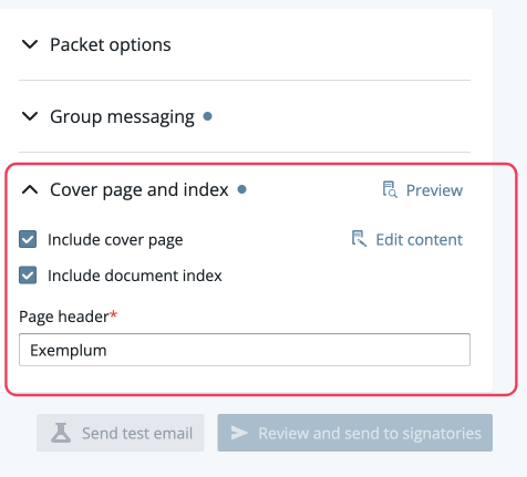 : if you're sending a PDF packet, you can include a cover page with any selected signing instructions.Include document index